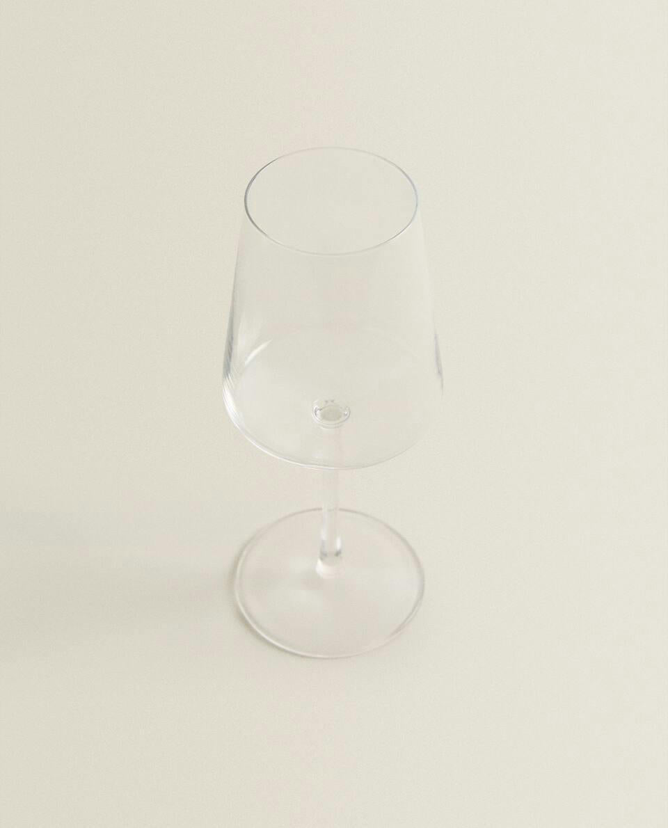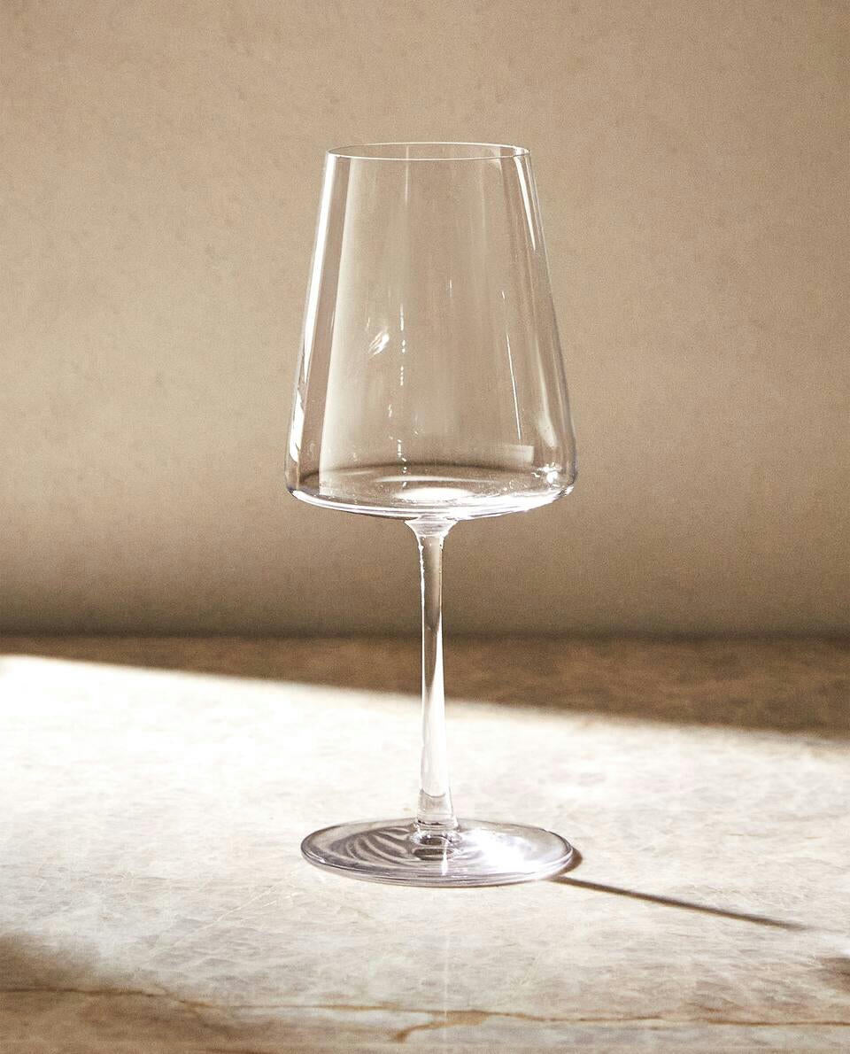 Clear crystalline wine glass featuring a contemporary conical design.