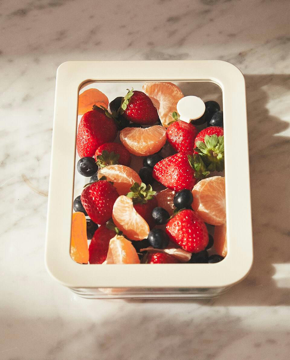 Transparent rectangular airtight container with a capacity of 700 ml.